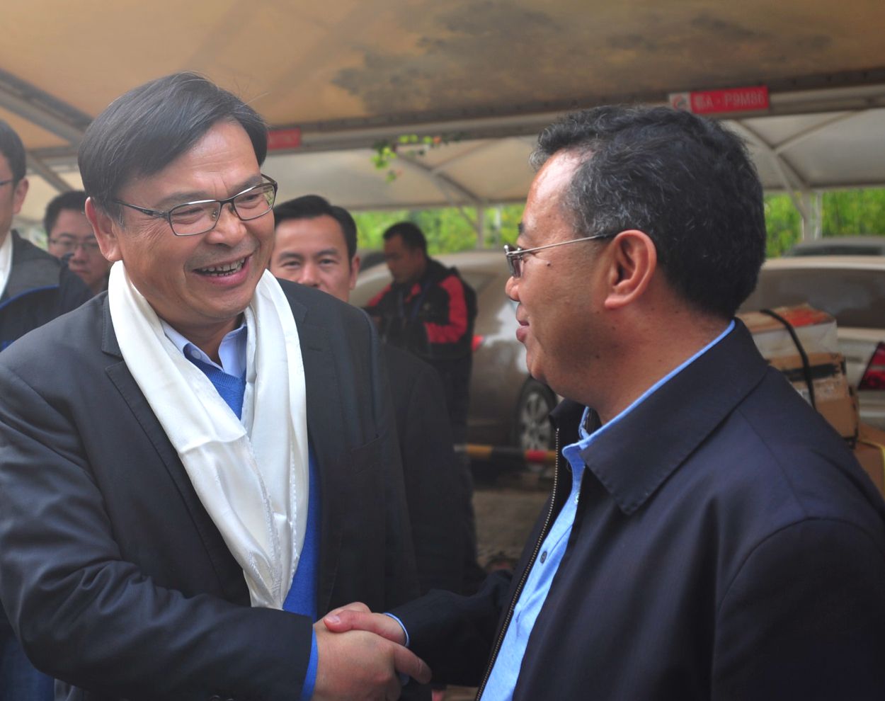 普布顿珠市长向李叶青总裁敬献哈达并亲切握手