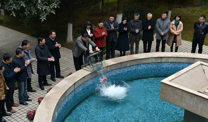 随后,公司党委书记、总裁李叶青投放锦鲤,当寓意吉祥的锦鲤跃入水中时,现场掌声雷动,干部员工激动自豪之情溢于言表,庆祝活动也在欢声笑语中结束。