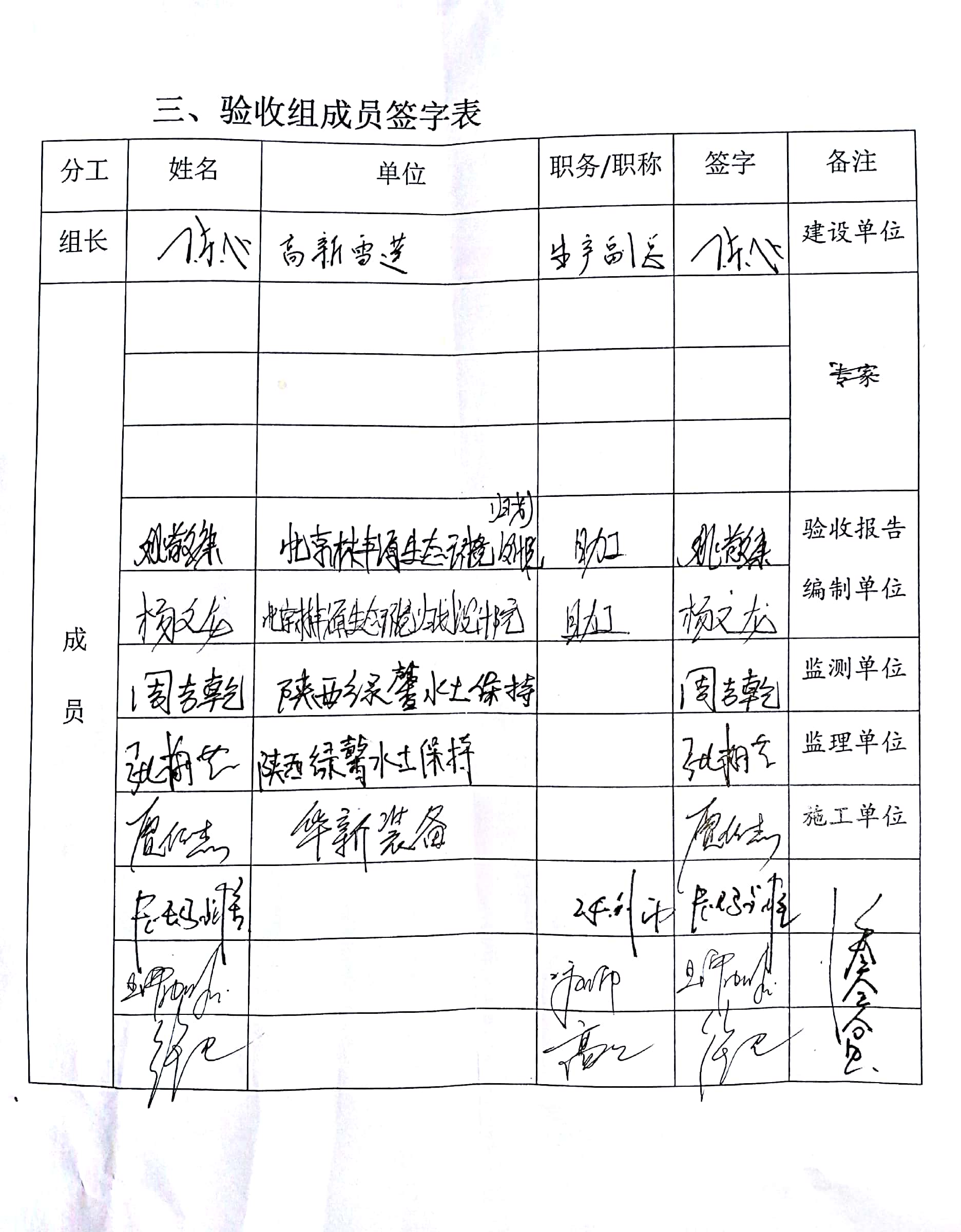 4、验收组成员签字