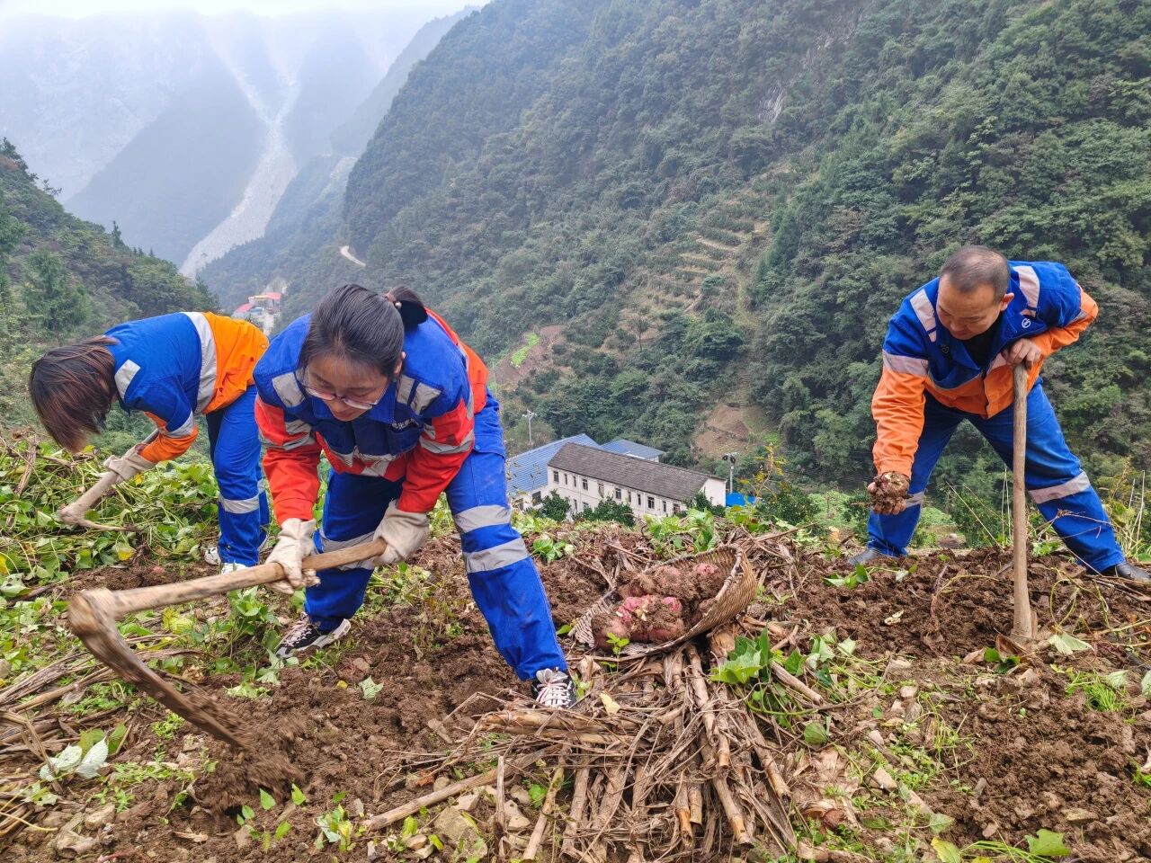 金秋重阳,红薯丰收。华新秭归公司5名志愿者走进郭家坝镇玄武洞村,为72岁的独居老人周立菊抢收红薯。“周奶奶,您歇着,今天一定收得干干净净!”志愿者们一下地便忙活起来——有人挥镰清叶,有人握锄翻土,有人弯腰拾薯,有人往返搬运。经过近4小时劳作,志愿者共帮助周立菊与同村李大爷收获红薯1000余斤,并协助晾晒、联系销售,解决老人储存难题。“看着老人脸上的笑容,比啥都值。”一位志愿者说道。